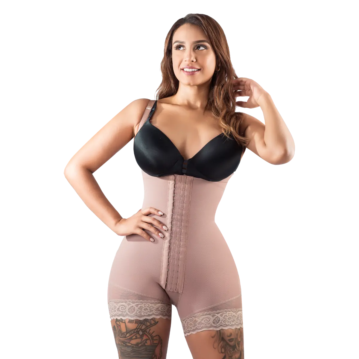 Funciona como faja moldeadora de cintura, piernas, y caderas, además hace un excelente realce de glúteos.
